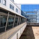 El proyecto se ha adaptado a los requerimientos funcionales dividiendo el programa definido en dos edificios independientes conectados por una vía principal de acceso. El edificio de Atención Especializada alberga los servicios del nuevo Centro Comarcal de Urgencias, Radiología, Áreas de Quirófanos, Rehabilitación y Consultas. Asimismo, el edificio Residencial Hospitalario se organiza en 12 unidades de 25 camas de larga y media estancia junto con un Centro de Atención diurna y los servicios de apoyo necesarios